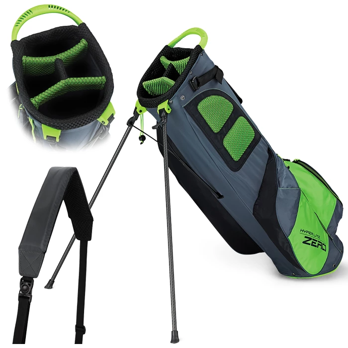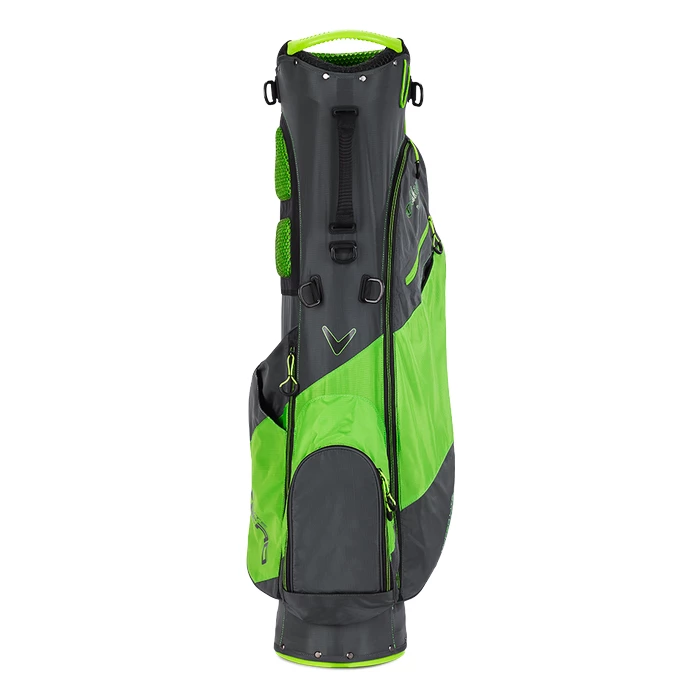 This is the gold standard for Callaway in an ultra-lightweight carry bag. It was engineered to shave every extra ounce out of the product, without sacrificing durability and functionality. It starts with the lightweight, highly durable nylon. The top, which comfortably carries 14 clubs, and bottom were engineered to maintain structural integrity while shaving away unnecessary ounces. The legs are made of carbon fiber which have one of the best strength to weight ratios in the world. The 4 zippered pockets are more than ample storage to carry all that you will need on the course in any conditions.