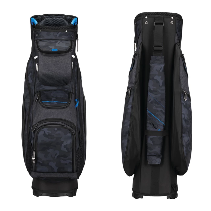 The Org 14 is Callaway’s best-selling cart bag. As the name suggests, the bag leads the industry for easy organization with a 14-way top with individual full length dividers and 12 pockets for all of your storage needs. All pockets are forward facing as to be easily accessible on the cart and have a purpose in mind. It features a magnetic pocket for the Range Finder, dual magnetic valuables pockets for easy access, two large insulated cooler pockets with drain ports. All of these great features are wrapped with a heather woven fabric to give the bag a style of its own.
