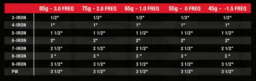 *This parallel tip shaft comes in one length, which can be trimmed/used for all clubs (ie. 3-PW).