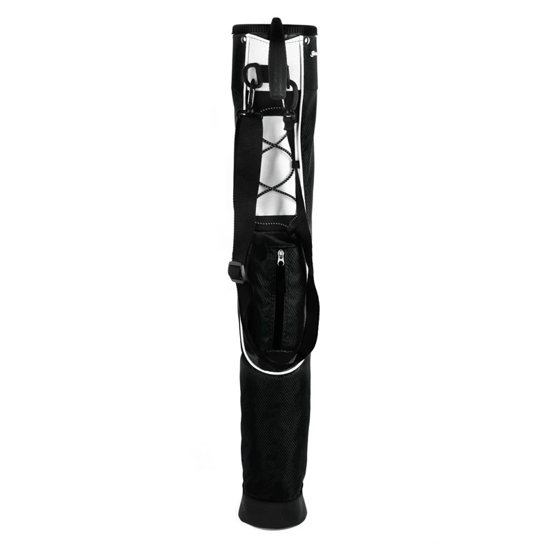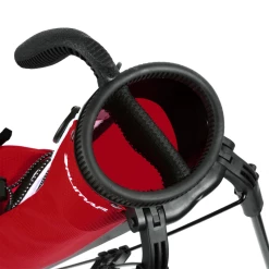 Ideal for a day at the driving range, or a few holes at the executive course. Two compartment top, Ultra lightweight construction, One accessory pocket, Durable carry handle, Detachable shoulder strap, Adjustable elastic lanyard and strong stand mechanism.