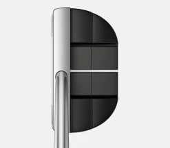 The center-shafted head offers a visual symmetry, and tungsten toe-heel weights ensure stability for improved accuracy. The shallow milled face provides a firmer response and consistent ball speed. Using color blocking, a platinum topline contrasts against the black cavity to draw the focus forward.