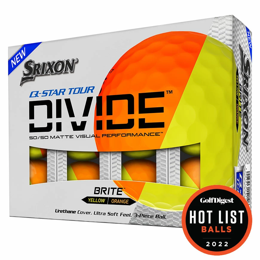 Meet the all-new Q-STAR TOUR DIVIDE, a golf ball that stands out on the course with its unique 50/50 matte urethane cover. DIVIDE boasts all the drive-boosting, chip-stopping performance of a classic Q-STAR TOUR, but comes in a new dual color construction.
