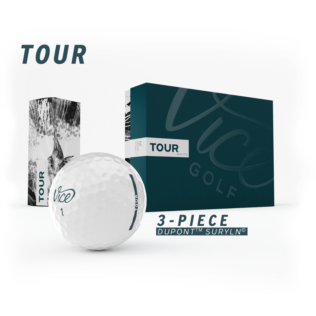The thin DuPont™ Surlyn© cover is extremely tough and cut-resistant, offering high durability. The new Vice TOUR features a 312 large dimple pattern reduces air resistance to a minimum and results in a more stable trajectory of the golf ball.